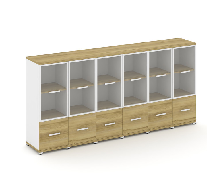 Concept Шкаф 6 узких секций, 3 ниши CN.STU-362 RPW W Дуб Винченцо/Белый Бриллиант/Металл Белый/Прозр