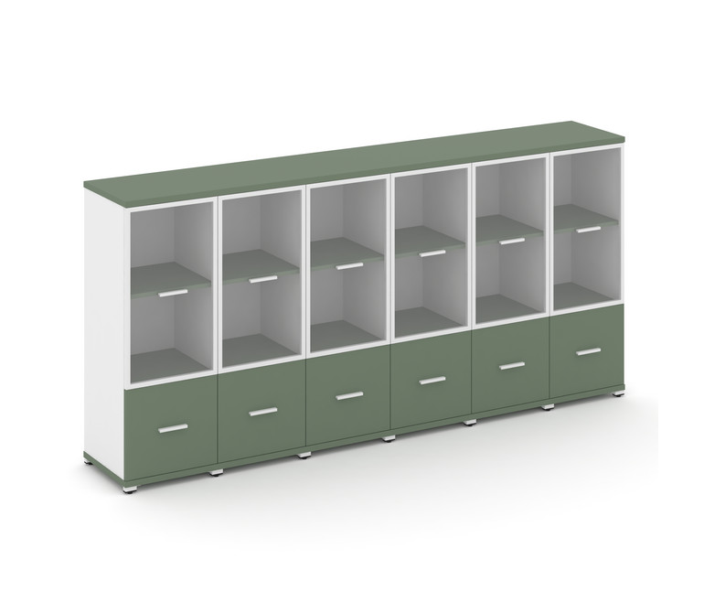 Concept Шкаф 6 узких секций, 3 ниши CN.STU-362 RPW W Кобо/Белый Бриллиант/Металл Белый/Прозрачный 25