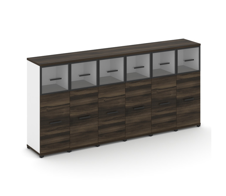Concept Шкаф 6 узких секций, 3 ниши CN.STU-364 RPB B Дуб Мали/Белый Бриллиант/Металл Черный/Прозрачн