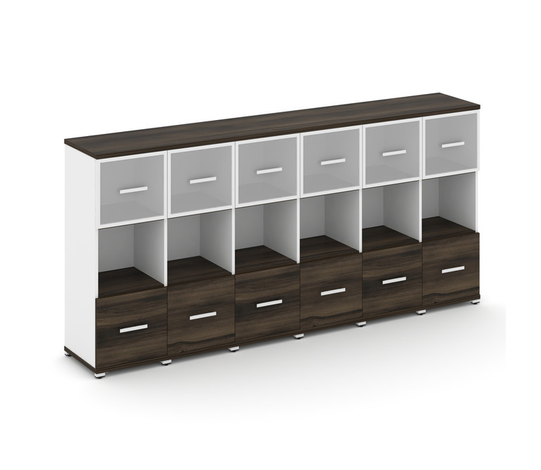 Concept Шкаф 6 узких секций, 3 ниши CN.STU-365 RMW W Дуб Мали/Белый Бриллиант/Металл Белый/Сатин 250