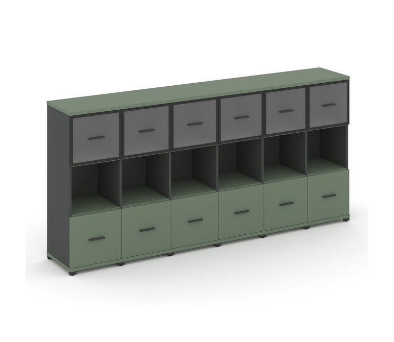 Concept Шкаф 6 узких секций, 3 ниши CN.STU-365 RPB A Кобо/Антрацит/Металл Антрацит/Прозрачный 2500*4