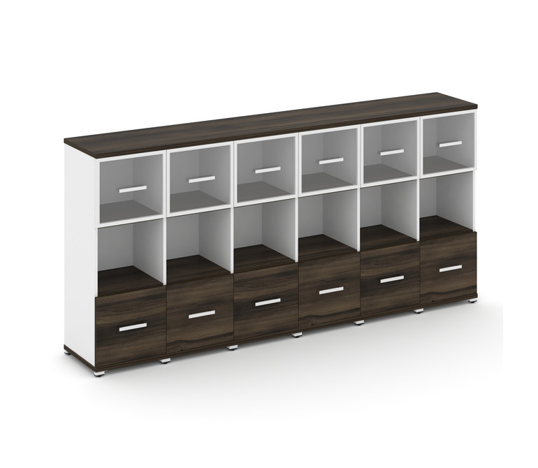 Concept Шкаф 6 узких секций, 3 ниши CN.STU-365 RPW W Дуб Мали/Белый Бриллиант/Металл Белый/Прозрачны