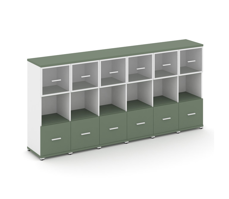 Concept Шкаф 6 узких секций, 3 ниши CN.STU-365 RPW W Кобо/Белый Бриллиант/Металл Белый/Прозрачный 25