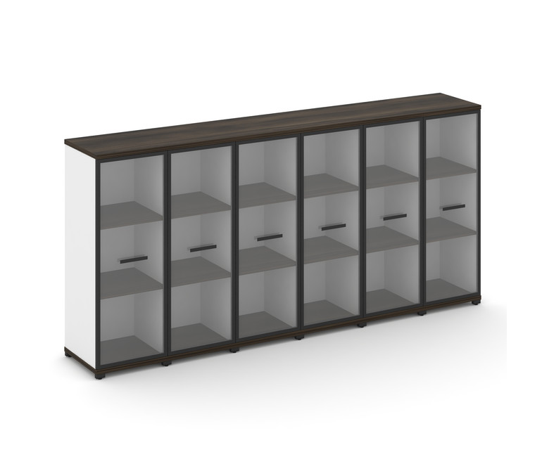 Concept Шкаф 6 узких секций, 3 ниши CN.STU-366 RPB B Дуб Мали/Белый Бриллиант/Металл Черный/Прозрачн