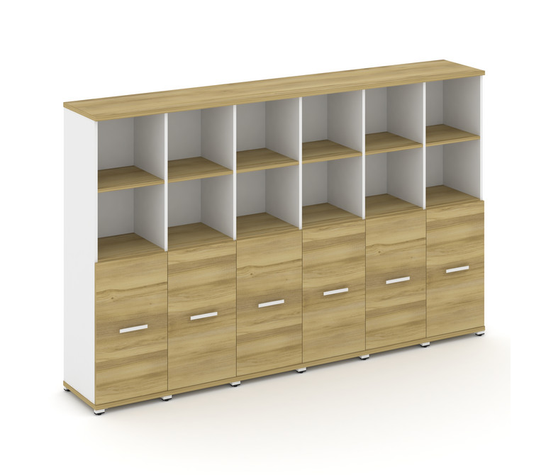 Concept Шкаф 6 узких секций, 4 ниши CN.STU-461 W Дуб Винченцо/Белый Бриллиант/Металл Белый 2500*420*