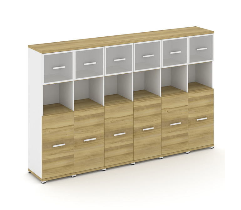 Concept Шкаф 6 узких секций, 4 ниши CN.STU-465 RMW W Дуб Винченцо/Белый Бриллиант/Металл Белый/Сатин