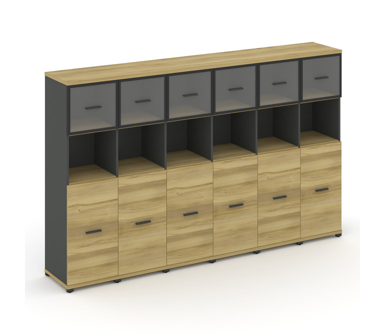 Concept Шкаф 6 узких секций, 4 ниши CN.STU-465 RPB A Дуб Винченцо/Антрацит/Металл Антрацит/Прозрачны