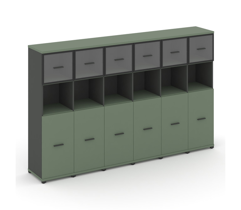 Concept Шкаф 6 узких секций, 4 ниши CN.STU-465 RPB A Кобо/Антрацит/Металл Антрацит/Прозрачный 2500*4
