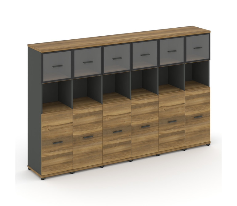 Concept Шкаф 6 узких секций, 4 ниши CN.STU-465 RPB A Сандал Янтарный/Антрацит/Металл Антрацит/Прозра