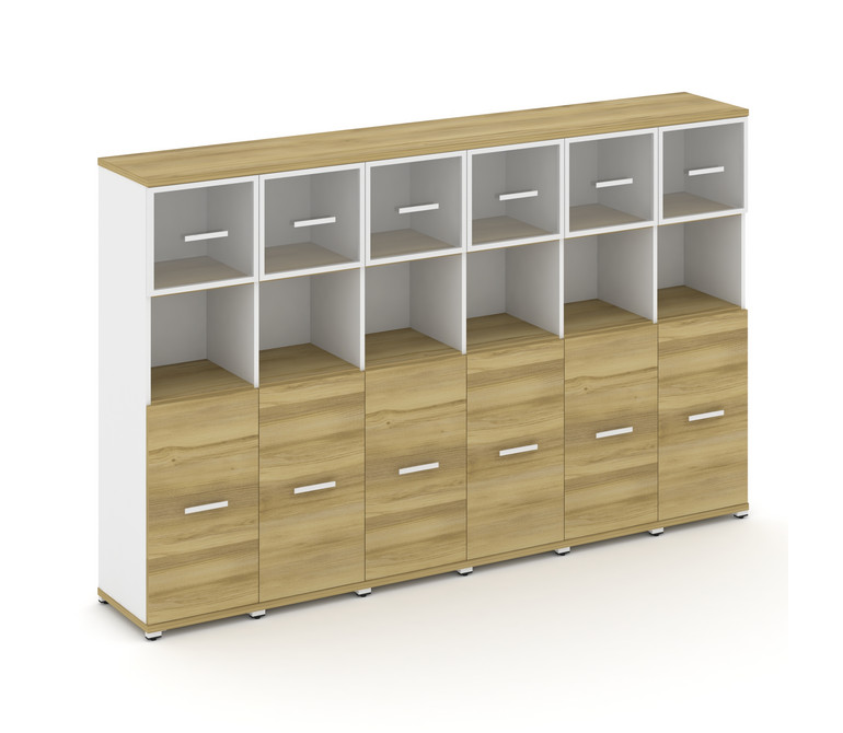 Concept Шкаф 6 узких секций, 4 ниши CN.STU-465 RPW W Дуб Винченцо/Белый Бриллиант/Металл Белый/Прозр