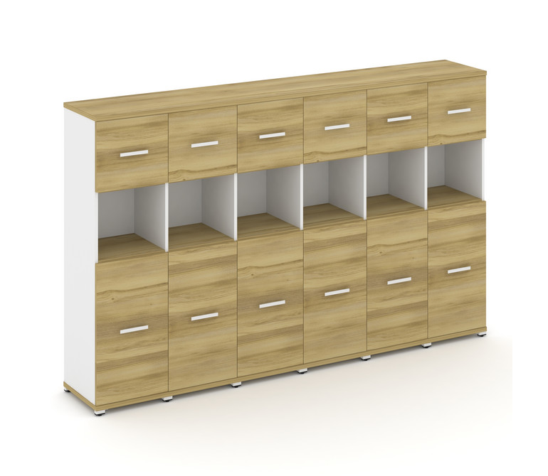 Concept Шкаф 6 узких секций, 4 ниши CN.STU-465 W Дуб Винченцо/Белый Бриллиант/Металл Белый 2500*420*