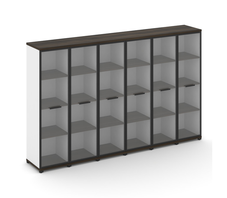 Concept Шкаф 6 узких секций, 4 ниши CN.STU-466 RPB B Дуб Мали/Белый Бриллиант/Металл Черный/Прозрачн