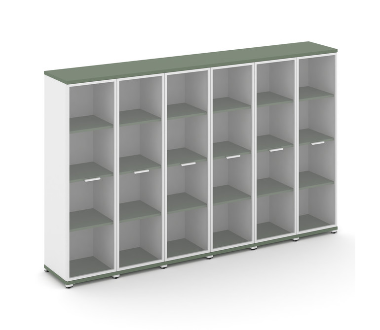 Concept Шкаф 6 узких секций, 4 ниши CN.STU-466 RPW W Кобо/Белый Бриллиант/Металл Белый/Прозрачный 25