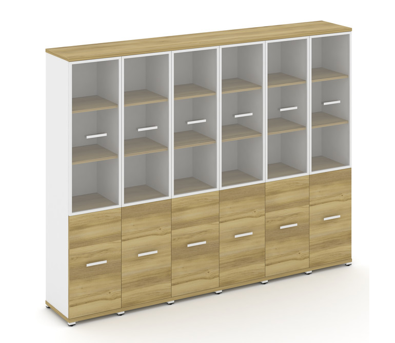 Concept Шкаф 6 узких секций, 5 ниш CN.STU-562 RPW W Дуб Винченцо/Белый Бриллиант/Металл Белый/Прозра