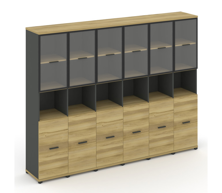 Concept Шкаф 6 узких секций, 5 ниш CN.STU-563 RPB A Дуб Винченцо/Антрацит/Металл Антрацит/Прозрачный