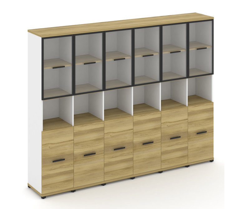 Concept Шкаф 6 узких секций, 5 ниш CN.STU-563 RPB B Дуб Винченцо/Белый Бриллиант/Металл Черный/Прозр