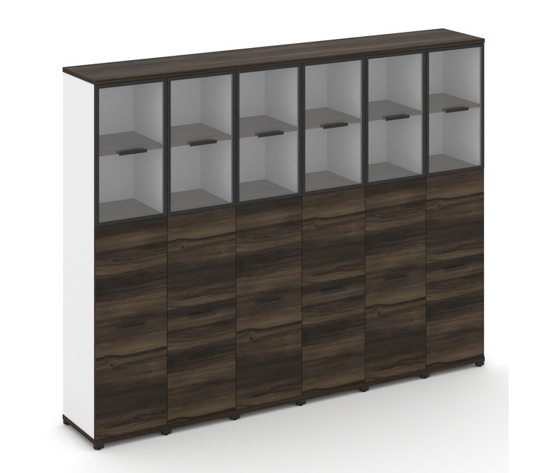 Concept Шкаф 6 узких секций, 5 ниш CN.STU-565 RPB B Дуб Мали/Белый Бриллиант/Металл Черный/Прозрачны