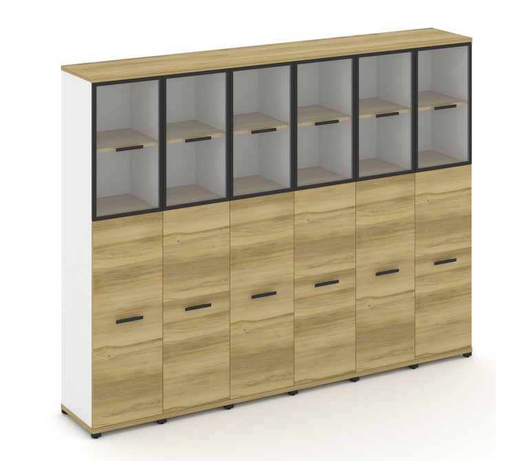 Concept Шкаф 6 узких секций, 5 ниш CN.STU-565 RPB B Дуб Винченцо/Белый Бриллиант/Металл Черный/Прозр