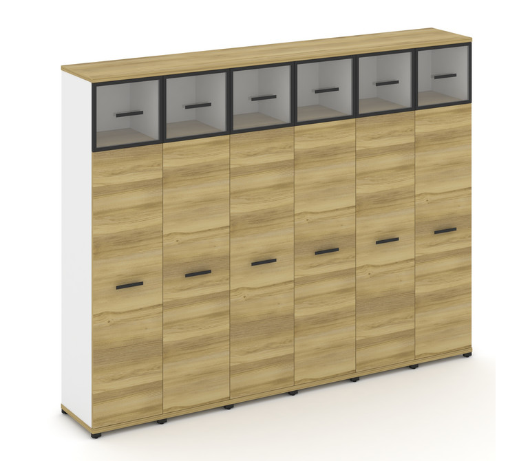 Concept Шкаф 6 узких секций, 5 ниш CN.STU-567 RPB B Дуб Винченцо/Белый Бриллиант/Металл Черный/Прозр