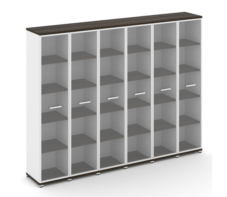 Concept Шкаф 6 узких секций, 5 ниш CN.STU-568 RPW W Дуб Мали/Белый Бриллиант/Металл Белый/Прозрачный
