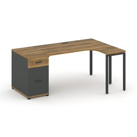 Concept Стол эргономичный CN.SA-403(L) B Дуб Винченцо/Белый Бриллиант/Металл Черный 1800*1180*750