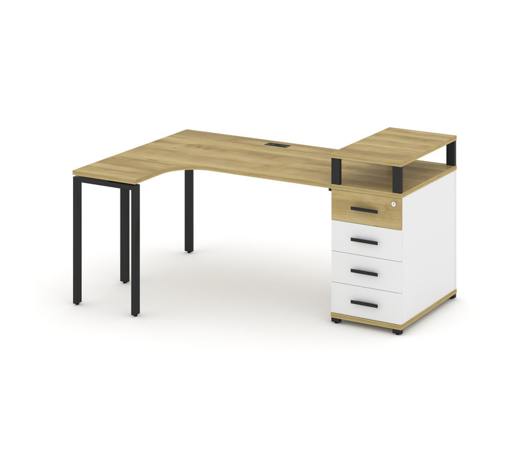 Concept Стол эргономичный CN.SA-405(L) B Дуб Винченцо/Белый Бриллиант/Металл Черный 1800*1180*917