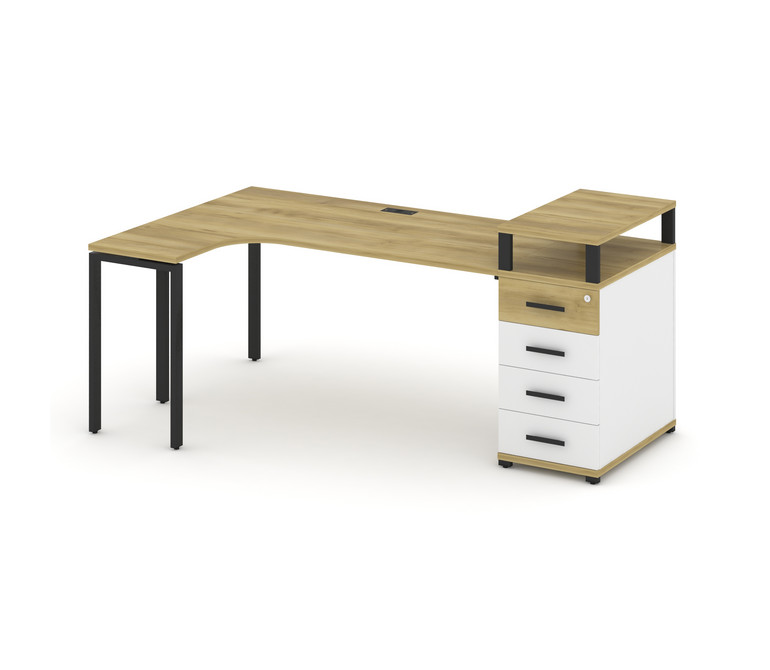 Concept Стол эргономичный CN.SA-406(L) B Дуб Винченцо/Белый Бриллиант/Металл Черный 2000*1180*917
