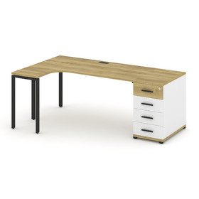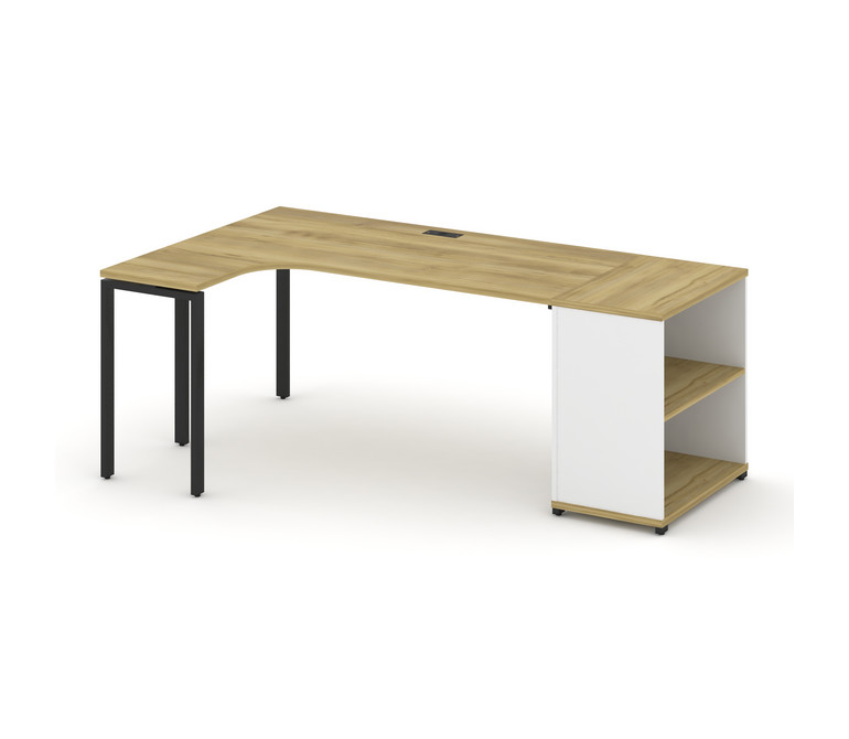 Concept Стол эргономичный опорным стеллажом CN.SA-202(L) Дуб Винченцо/Белый Бриллиант/Металл Черный