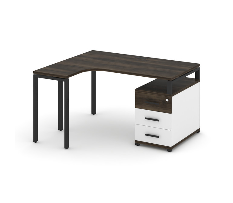 Concept Стол эргономичный с опорной тумбой CN.SA-301(L) B Дуб Мали/Белый Бриллиант/Металл Черный 138