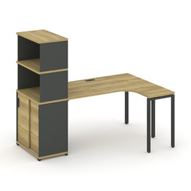 Concept Стол эргономичный с опорной тумбой CN.SA-302(L) B Дуб Мали/Белый Бриллиант/Металл Черный 138