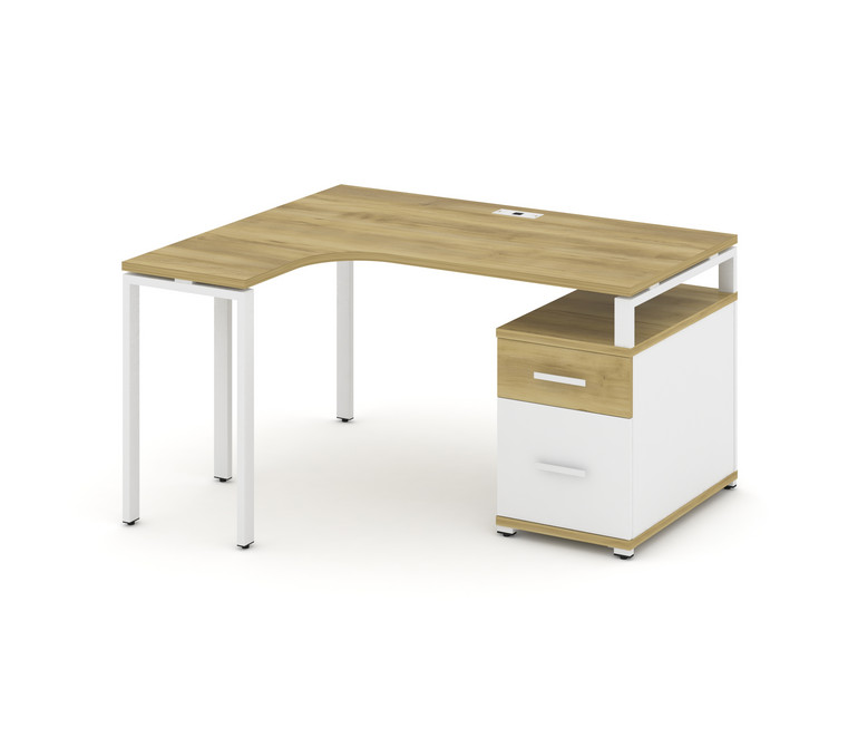Concept Стол эргономичный с опорной тумбой CN.SA-302(L) W Дуб Винченцо/Белый Бриллиант/Металл Белый
