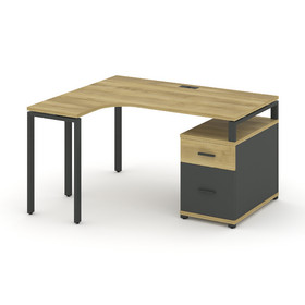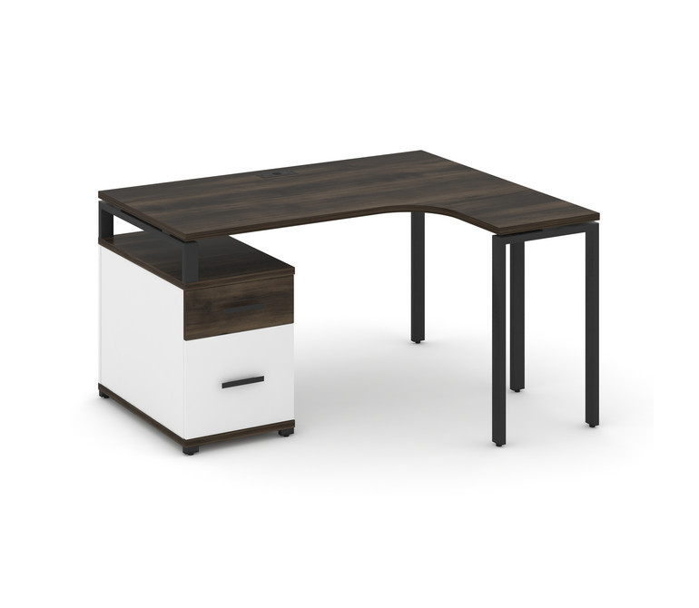 Concept Стол эргономичный с опорной тумбой CN.SA-302(R) B Дуб Мали/Белый Бриллиант/Металл Черный 138