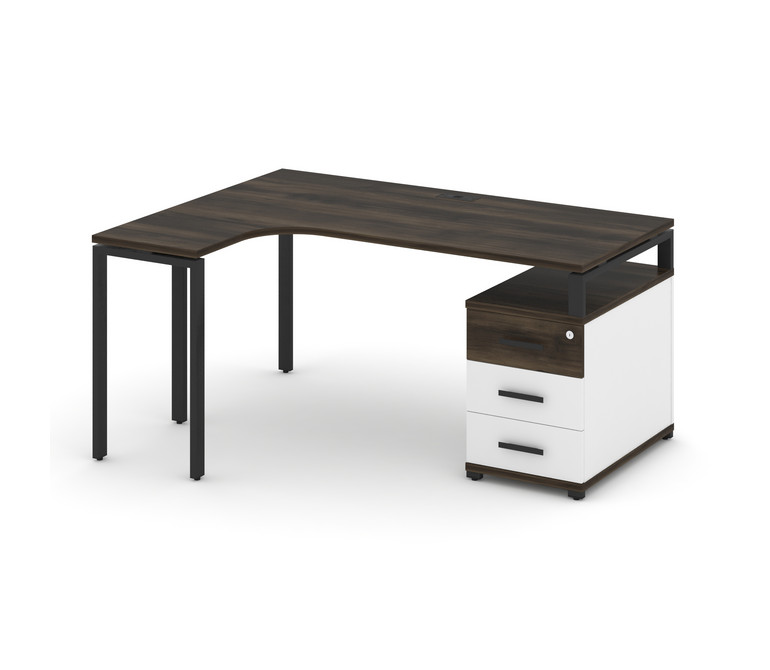 Concept Стол эргономичный с опорной тумбой CN.SA-303(L) B Дуб Мали/Белый Бриллиант/Металл Черный 158