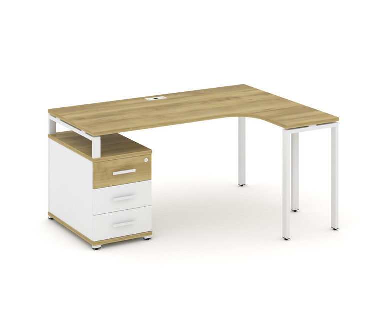 Concept Стол эргономичный с опорной тумбой CN.SA-303(R) W Дуб Винченцо/Белый Бриллиант/Металл Белый