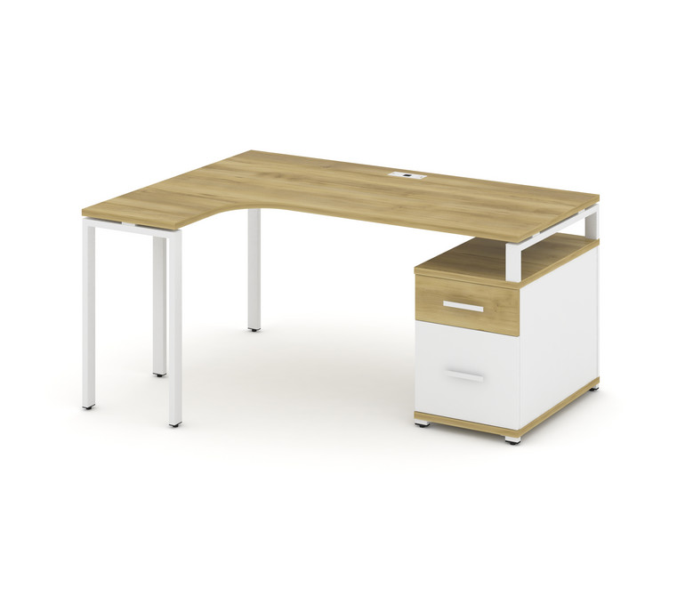 Concept Стол эргономичный с опорной тумбой CN.SA-304(L) W Дуб Винченцо/Белый Бриллиант/Металл Белый