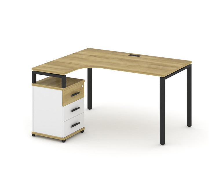 Concept Стол эргономичный с опорной тумбой CN.SA-305(L) B Дуб Винченцо/Белый Бриллиант/Металл Черный