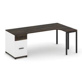 Concept Стол эргономичный с опорной тумбой CN.SA-305(L) W Дуб Винченцо/Белый Бриллиант/Металл Белый