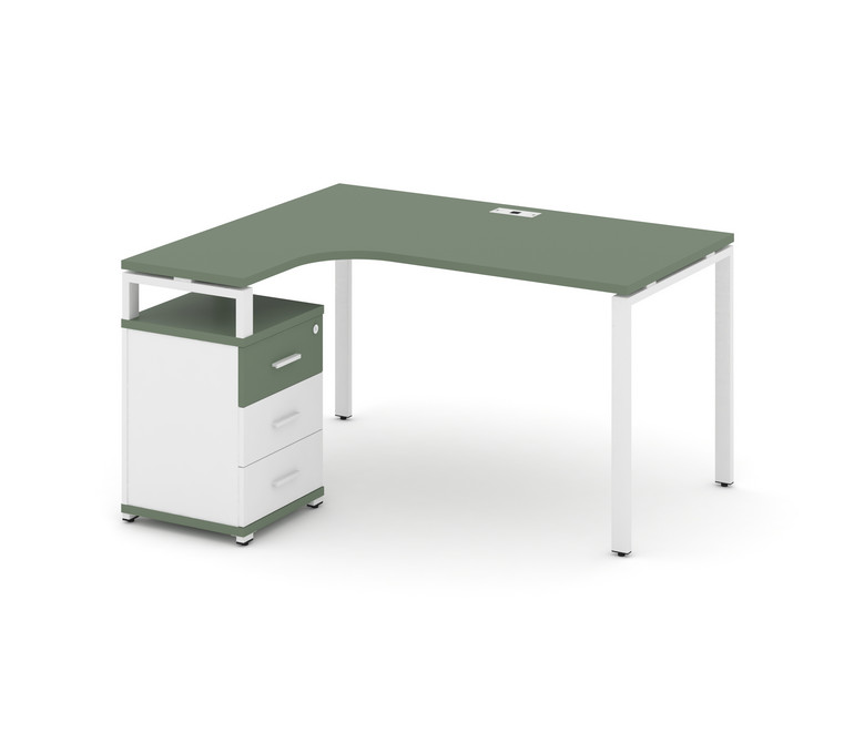 Concept Стол эргономичный с опорной тумбой CN.SA-305(L) W Кобо/Белый Бриллиант/Металл Белый 1380*118
