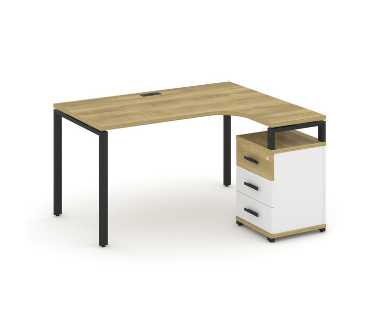 Concept Стол эргономичный с опорной тумбой CN.SA-305(R) B Дуб Винченцо/Белый Бриллиант/Металл Черный