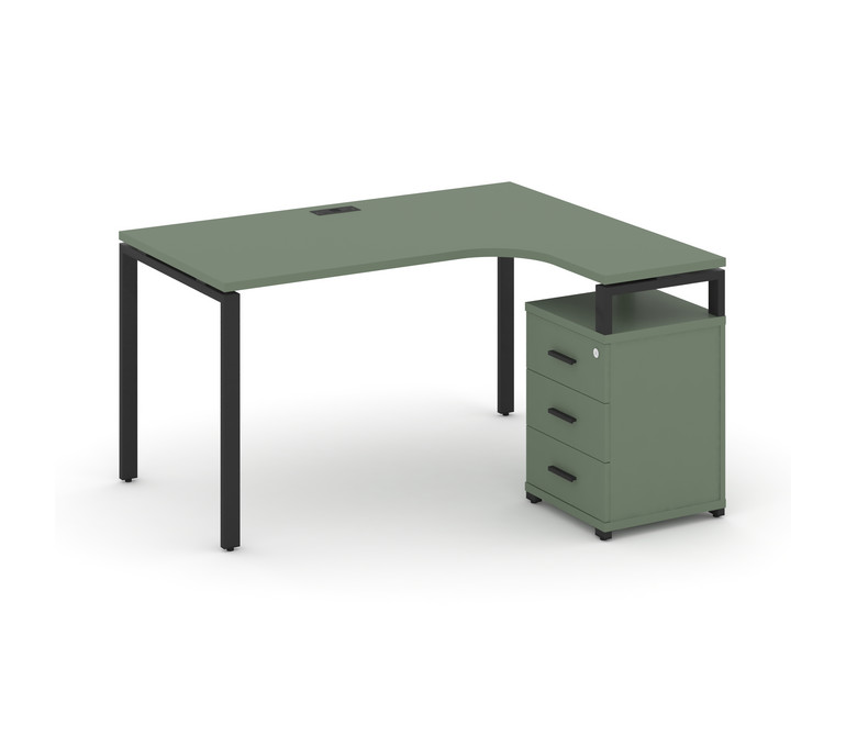 Concept Стол эргономичный с опорной тумбой CN.SA-305(R) B Кобо/Металл Черный 1380*1180/1546*750