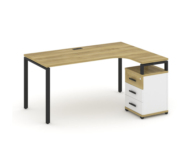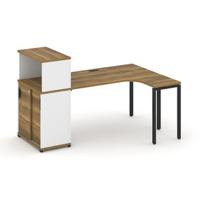 Concept Стол эргономичный с опорной тумбой CN.SA-307(R) B Дуб Винченцо/Белый Бриллиант/Металл Черный