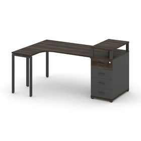Concept Стол эргономичный с опорной тумбой CN.SA-308(L) B Дуб Винченцо/Белый Бриллиант/Металл Черный