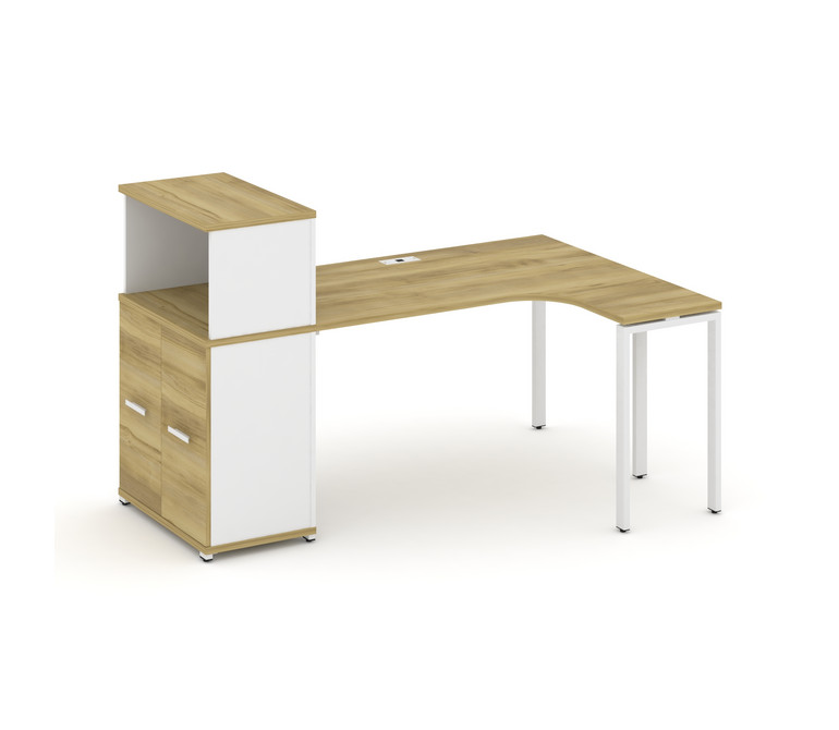 Concept Стол эргономичный с опорным распаш. шкафом с надставкой низ. CN.SA-213(R) W Дуб Винченцо/Бе