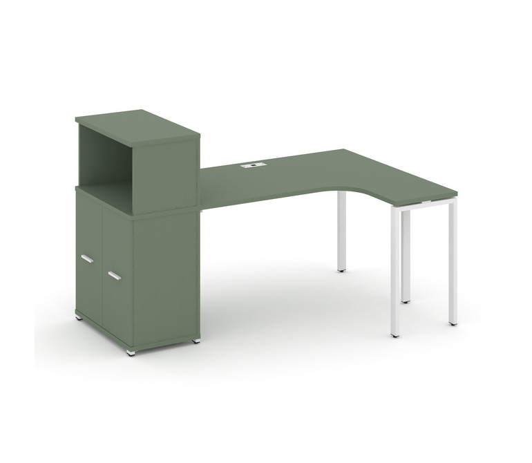 Concept Стол эргономичный с опорным распаш. шкафом с надставкой низ. CN.SA-213(R) W Кобо/Металл Бел