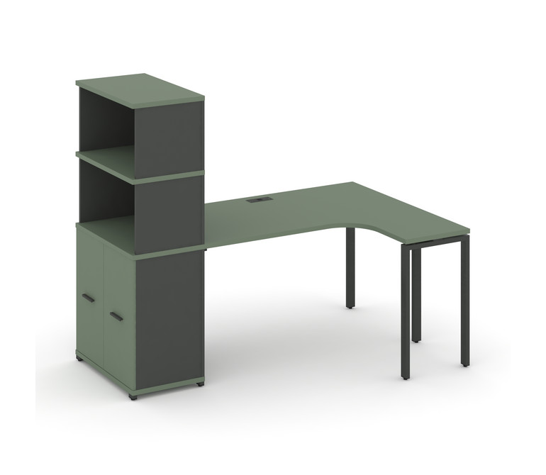 Concept Стол эргономичный с опорным распаш. шкафом с надставкой выс. CN.SA-215(R) A Кобо/Антрацит/М