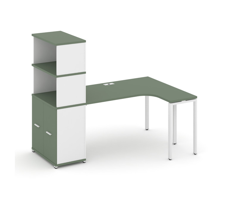Concept Стол эргономичный с опорным распаш. шкафом с надставкой выс. CN.SA-215(R) W Кобо/Белый Брил