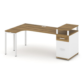 Concept Стол эргономичный с опорным стеллажом с надставкой низ. CN.SA-205(L) Кобо/Белый Бриллиант/Ме