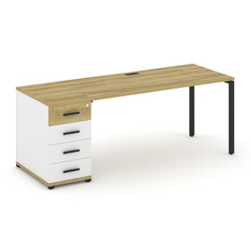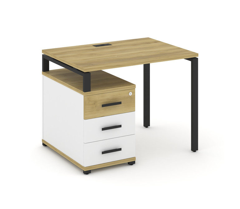 Concept Стол письменный с 1 опорной тумбой CN.SP-301 B Дуб Винченцо/Белый Бриллиант/Металл Черный 98
