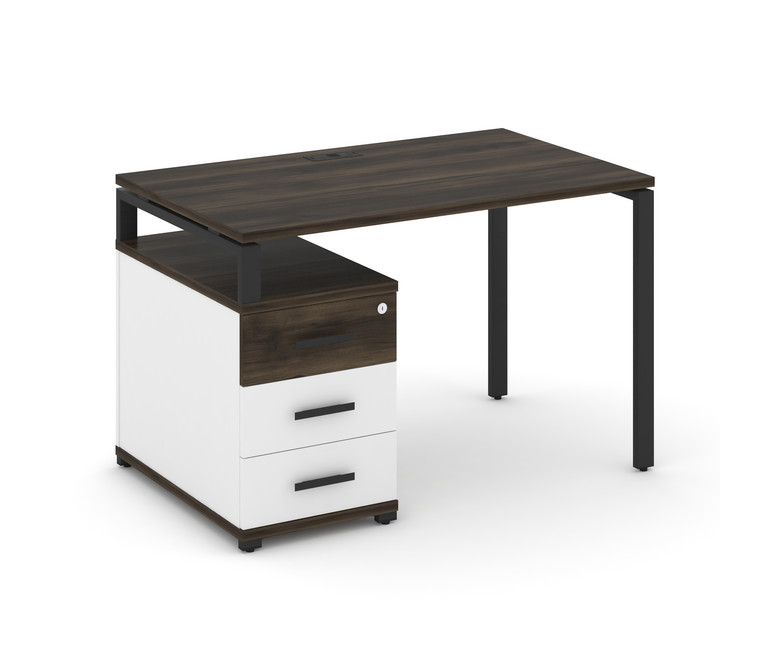 Concept Стол письменный с 1 опорной тумбой CN.SP-302 B Дуб Мали/Белый Бриллиант/Металл Черный 1180/1