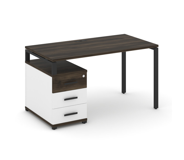 Concept Стол письменный с 1 опорной тумбой CN.SP-303 B Дуб Мали/Белый Бриллиант/Металл Черный 1380/1